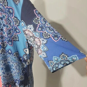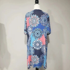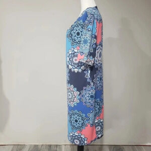 Sunsets & Sweet tea blue/pink mandala print short sleeve summer shift dress with 2 side pockets.