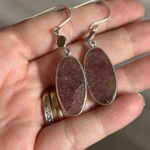 Fire Amber and sunstone (could be strawberry quartz hard to tell) gemstone earrings with sterling silver metal