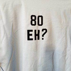 NWOT Happy Birthday on the front and 80 Eh? on the back. Funny comical T shirt Unisex. New item, never worn!