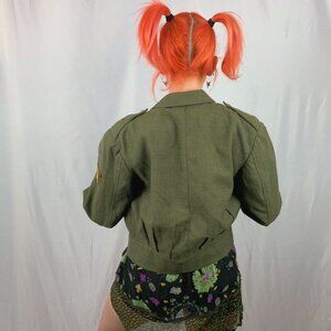 Super fun and cool blazer with patches loosely attached. No size or material tag.