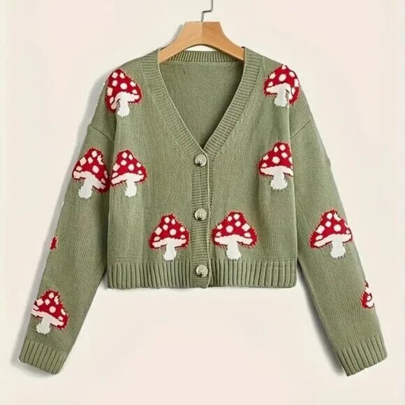 Super Cute Colorful Mushroom Forest Nature Cardigan Sweater