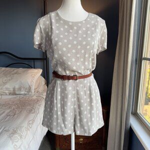 Super Cute Greige & White Polka Dot Shorts Romper