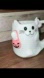 Adorable white cat mug with pink accents. Perfect for Halloween.