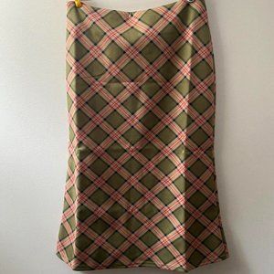 Plaid midi skirt suedette material flattering cut hits mid calf