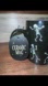 Black ceramic mug with dancing skeleton design. Perfect for Halloween or spooky decor.