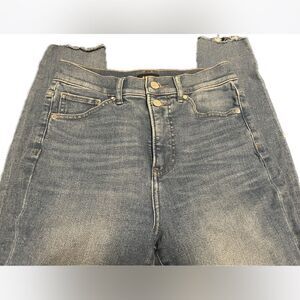 Super High-Waisted Medium Wash Double Button Skinny Jeans
