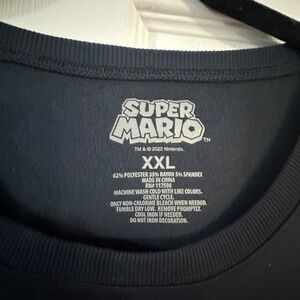 This Super Mario sweatshirt features vibrant artwork of Mario, Luigi, Princess Peach, Bowser, Toad, Yoshi, and more! A perfect way to show your love for the iconic Nintendo franchise. The sweatshirt is size XXL, made with a soft and comfy blend of polyester, rayon, and spandex for a relaxed fit and cozy feel. Ideal for lounging or casual outings. Brand new and unworn, this piece would make an excellent addition to any Super Mario collection.
