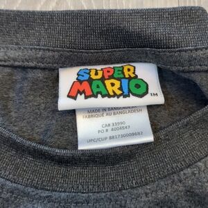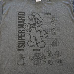 Dark gray t-shirt featuring a Super Mario graphic design. Perfect for fans of the iconic character.