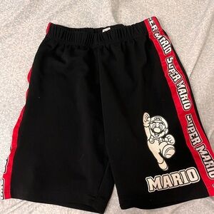 Black t-shirt and shorts set featuring Mario. Bold red accents. Comfortable and fun for kids.