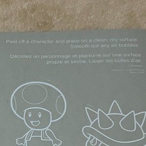 1x decal features Super Mario, Peach, 2x Toads, Spiny