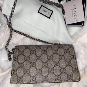 This beauty comes with a box, dust bag and shoulder strap chain. An iPhone 11 fits in the purse if your wondering it’s size.