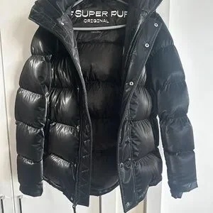 Black shiny Super Puff jacket bought last year and wore only a few times.