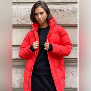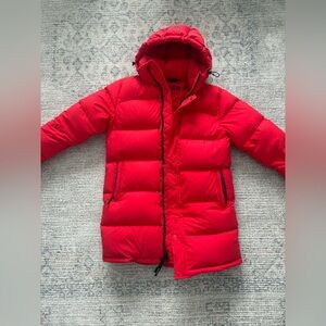 Excellent lightly used red Aritzia Super Puff in mid length. Rare colour, not available in stores anymore. Super warm.