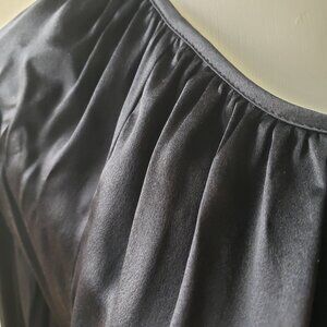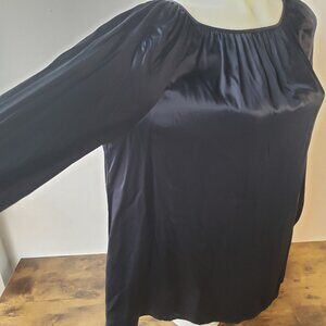 Very dark midnight Black Blue silk blouse, thin, buttery soft and flowy~
