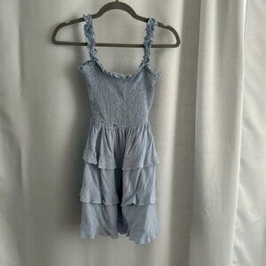Super Sweet Light Blue Smocked RuffledTie-Back Mini Dress XS