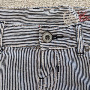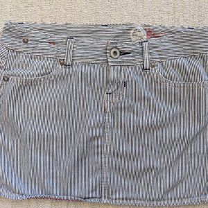 Gap women's mini skirt size 2. Blue and white stripes. Soft, moveable 100% cotton and super comfy. Measures 14.5 inches across top and 11 inches long in front, 13 inches long in back. Excellent condition.