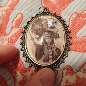 I purchased this adorable Luna Lovegood pendant on Etsy a long time ago, but have never worn it and have decided to pass it on to someone who will give it the love it deserves. Features the original book illustration of Luna wearing her lion hat under a domed glass cabochon, set in a beautiful antique-inspired brass frame. A wonderful gift for any fan that won't put more funds in the pockets of she-who-must-not-be-named! I bought this and am selling this as a pendant only, so it needs a chain or ribbon. Tagged Harry Potter for more exposure.