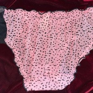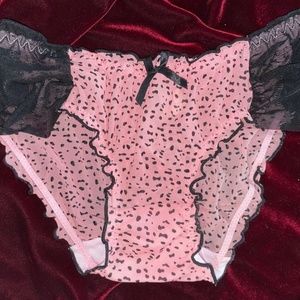 These Panties are pink with tiny black heats and dots... ( see close up pix ) featuring sheer ruffled sides