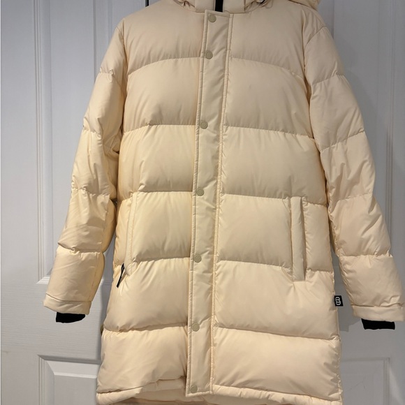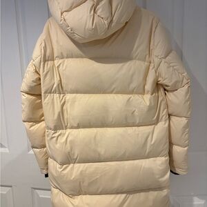 Off white colour middle length super puff sized XS. Only worn once as I upgraded to the longer version of this jacket.