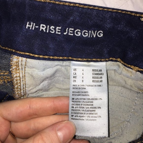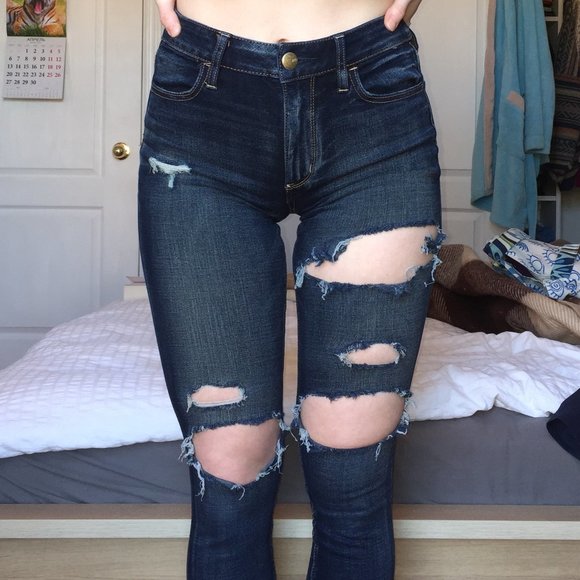 Skinny ripped jeans from American Eagle, super stretchy and soft. High rise with a nice dark wash.