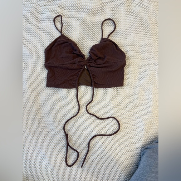 Superdown Brown Ribbed Drawstring Crop Top