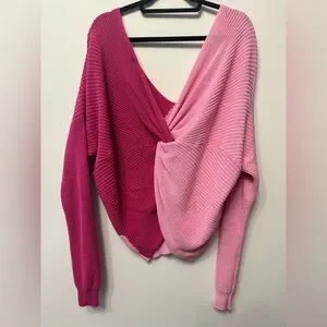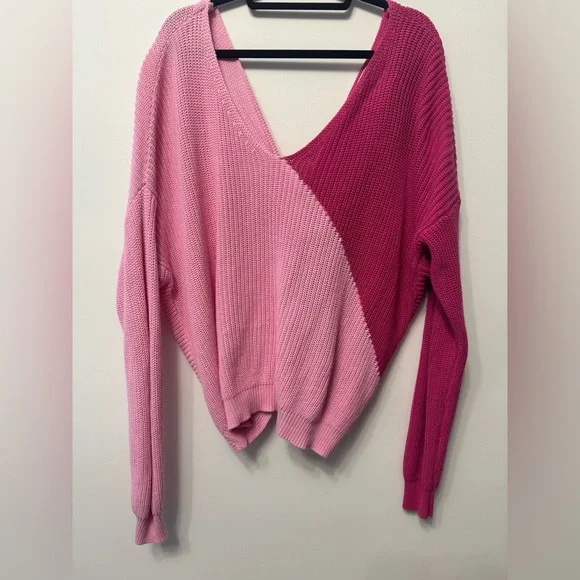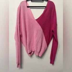 Chic V-neck sweater with a stylish colorblock design. Soft knit fabric for comfort.