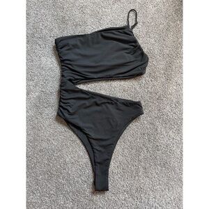 Black One-shoulder bodysuit with side cutout