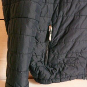See pics for details. One small hole in side / back of the left sleeve - easy repair - and there are two areas of ink stain in lining . see pics
