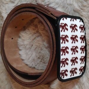 Superdry Unisex Brown leather Belt With Gryphon Belt Buckle