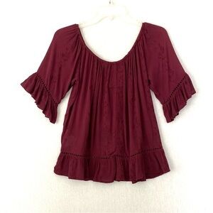 Get the ultimate boho vibe with the vintage-inspired Off Shoulder Top. Made of 100% Viscose.