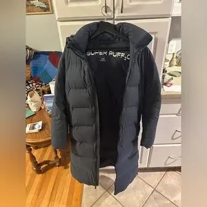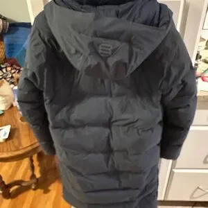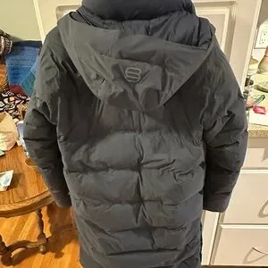 Excellent used condition. No rips or stains. The zipper at the bottom comes out a bit (when I bought it- it was like this). It doesn’t impact functionality. This jacket fits large, so fits size 4. It’s been amazing for the cold snaps in Alberta and the colour is a really pretty blue (admiral blue)