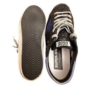 Golden Goose Black/Blue Leather and Glitter Low Top Superstar Sneakers