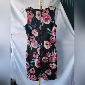Superstition Black Dress Pink Red White Flowers Sleeveless Zipper Back UK 10