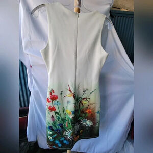 Superstition White Sleeveless Dress Sheath Colorful Flowers Zipper Back UK 10