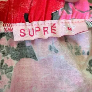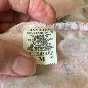 It’s 100% rayon, so can be washed at home and is wrinkle resistant. This piece is in excellent condition. Panels down the front give it a bit of flare.