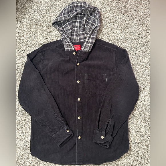 Supreme Hooded Color Blocked Corduroy Button up Shirt