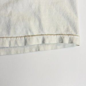 The shirt shows some signs of general wear. The box logo has some slight cracking and color-fading, and there is a very small, light stain at the bottom center of the shirt. There is also some light damage to the neck collar fabric. This is all unnoticeable without close inspection.