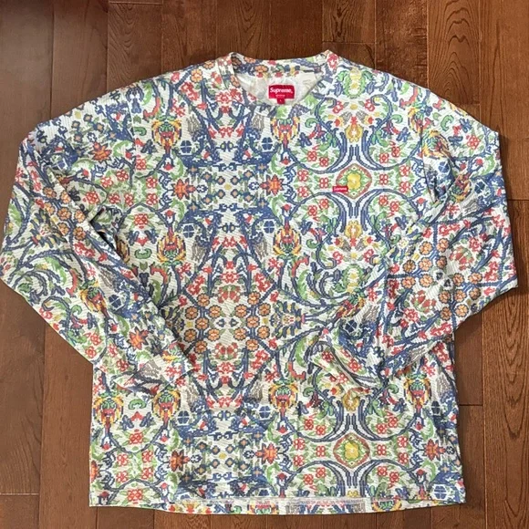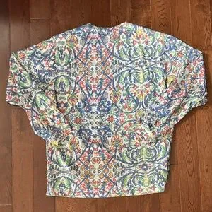 Vibrant crewneck with intricate multicolor design. Features bold patterns in blue, green, red, and yellow. Perfect for a unique style statement.