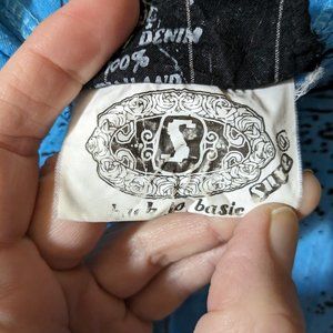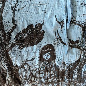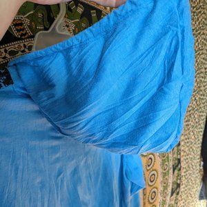 100% cotton material, sure design print, thin, bright blue, long sleeve pullover hoodie. Drawstring hood. Purchased as a gift, years ago but it did not fit so I kept it, but it was not my size either.