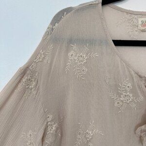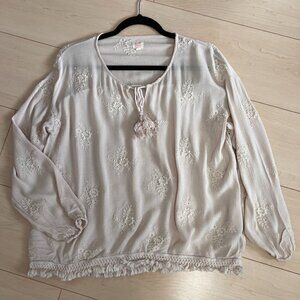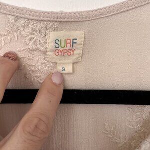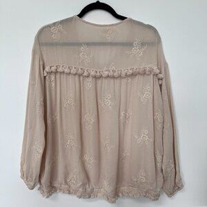 Surf Gypsy Boho Embroidered Peasant Blouse Fringe Hem Sz S