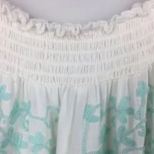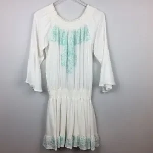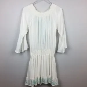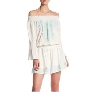 Surf Gypsy off shoulder cream mini dress with lining on skirt… beautiful bell sleeves