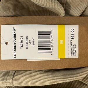 Surf & Swim Co. Explorer Overshirt Corduroy Cement Colour SZ M Button Front NWT