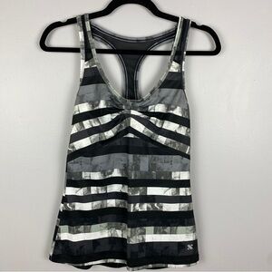 Surin Ruched Mesh Back Tank Top Small Black Grey