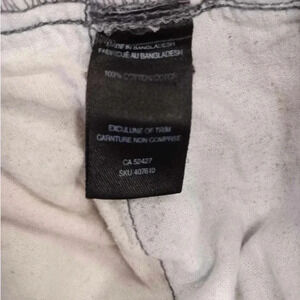 Medium wash denim, these moto style jeans feature a five pocket design with belt loops and straight legs. Very little stretch available.