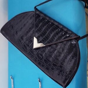 Black Alligator Clutch Shoulder Crossbody Purse