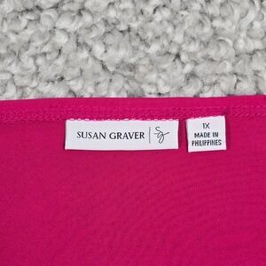Susan Graver Top Women 1X Pink Liquid Knit Stretch Office Minimalist Casual Tank