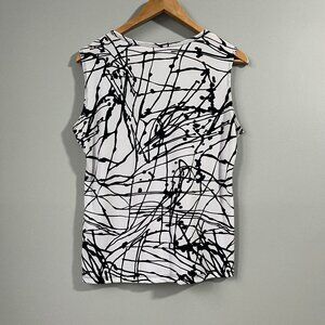 Pre-Loved. Made in USA Cross-Heart sleeveless top in black and white.