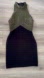 This stunning dress combines a metallic gold halter neckline with a sleek black bodycon silhouette, perfect for a night out. The sleeveless design and midi length add a touch of elegance, making it an ideal choice for cocktail events. The contrast between the shimmering upper and the solid black lower section creates a modern and sophisticated look.