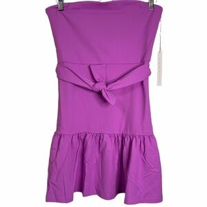 Susana Monaco Fuchsia Pink Strapless Mini Dress Cinched Waist Ruffle Hem Large