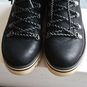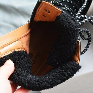 Faux fur lining and a lug sole for traction with every step. Round toe, lace-up vamp. Vegan leather upper, manmade sole. Zipper closure at the side. Purchased at Nordstrom.